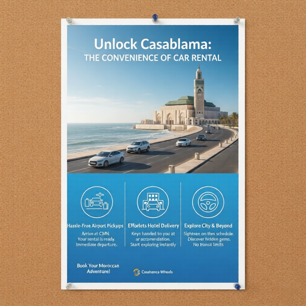 Need a car immediately upon arrival? Our delivery service covers Casablanca hotels, business districts, and train stations. For airport arrivals, check our Casablanca Airport Car Rental guide for fast pickup and smooth service.